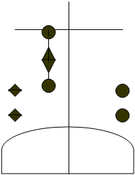 yerlerine üste bir siyah küre ortada siyah eşkenar dörtgen ve